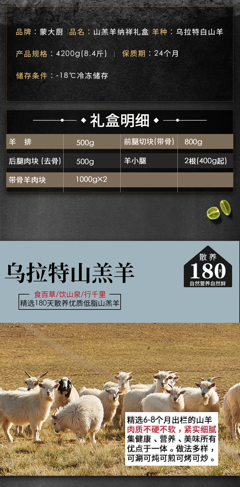 蒙大廚 內蒙古山羔羊羊肉禮盒6件8.4斤 送禮優選